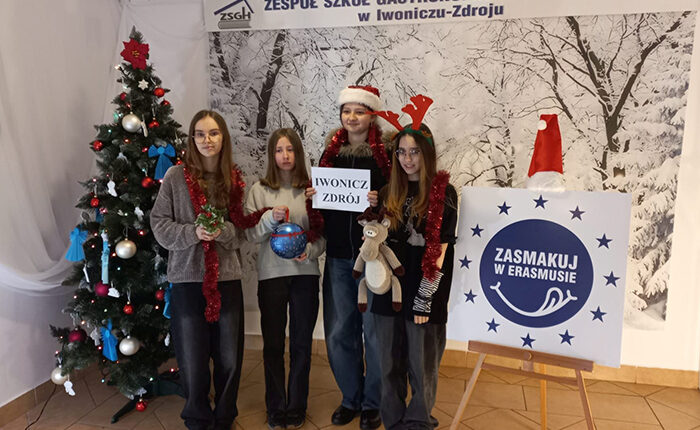 11 grudnia uczniowie z kl. VII skorzystali z zaproszenia i wybrali się do ZSG-H w Iwoniczu-Zdroju. Tam odbywał się Europejski Jarmark Świąteczny ,,Zasmakuj w Erasmusie”. Siódmoklasiści wzięli udział w grze edukacyjnej, podczas której rozwiązywali zagadki dotyczące tradycji europejskich świąt, przygotowywali włoską pizzę i dietetyczne desery, piekli świąteczne ciasteczka, wykonywali zadania ruchowe i zręcznościowe, próbowali swoich sił w karaoke, parzyli zimową